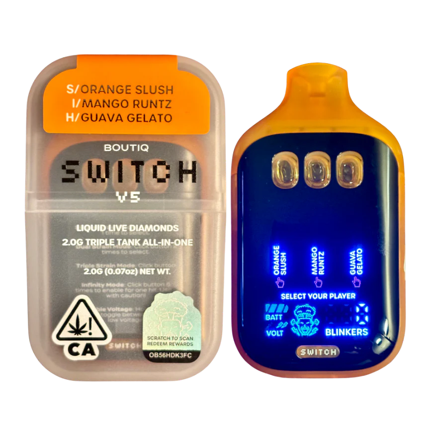 The 2G BOUTIQ Switch V5 Orange Slush (S) x Mango Runtz (I) x Guava Gelato (H) by N/A is a 2g multi-flavor switch vape ready to enjoy. Swap between distinct flavor profiles in a single device — perfect for variety lovers. Great for enjoying a versatile experience. Priced at $36.00.