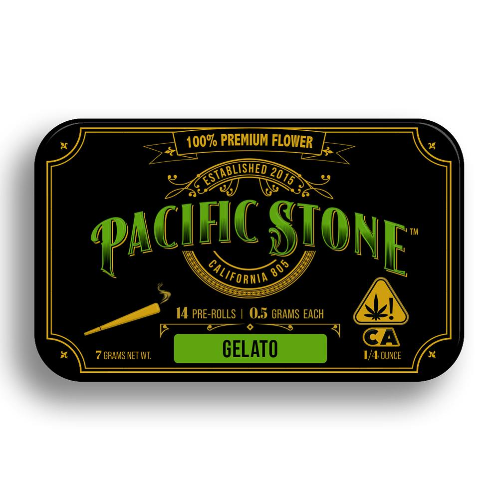 The Gelato Hybrid Pre-Rolls 14pk (7g) by Pacific Stone is a 14-pack pre-roll delivering balanced hybrid effects. Conveniently rolled and ready to enjoy right out of the package. Perfect for enjoying a versatile experience. Priced at $42.00.