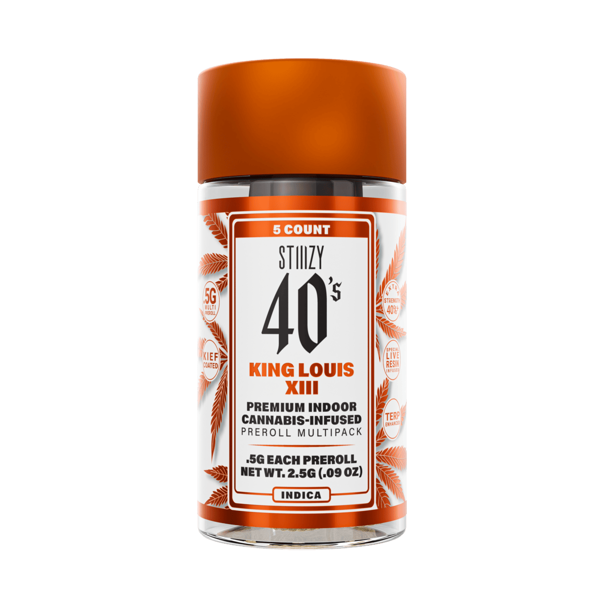 The – KING LOUIS XIII – .5G 40’s Infused Preroll 5 Pack by STIIIZY is an infused 1g pre-roll delivering enhanced potency and flavor. Ideal for those seeking a stronger experience, it offers rich flavor and enhanced effects. Priced at $30.00.