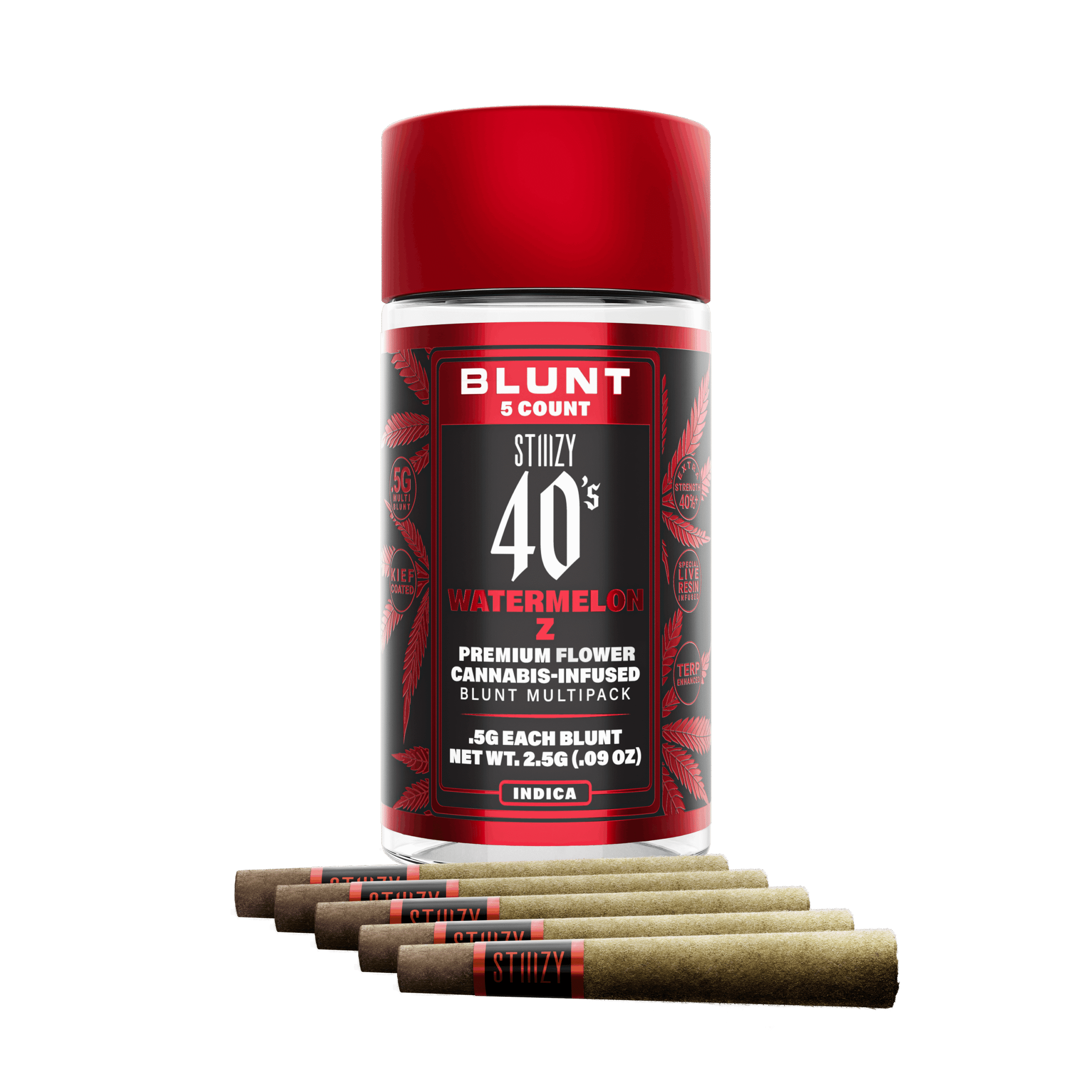 The – WATERMELON Z – .5G 40’s Infused Mini Blunt 5 Pack by STIIIZY is a 1g pre-roll delivering deep relaxation and calming effects. Ideal for unwinding after a long day, it offers smooth flavor and consistent potency. Priced at $32.00.